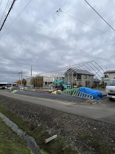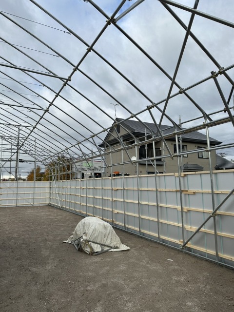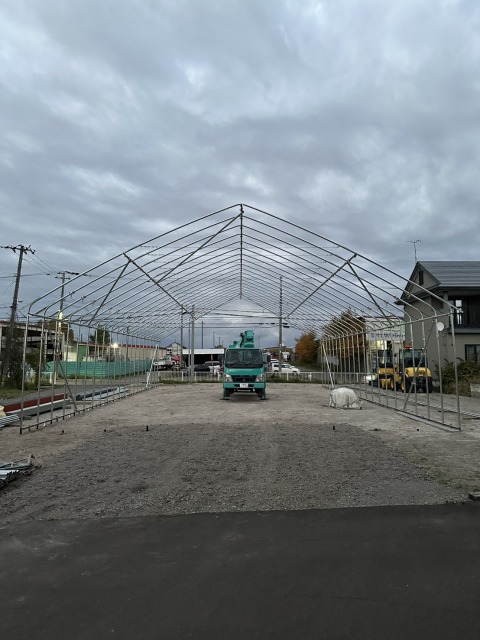深川市 農家さん D型倉庫の代用 間口10.8m・奥行18m・肩高4m