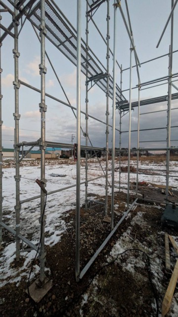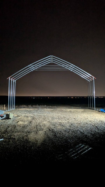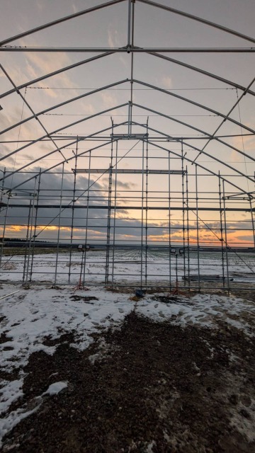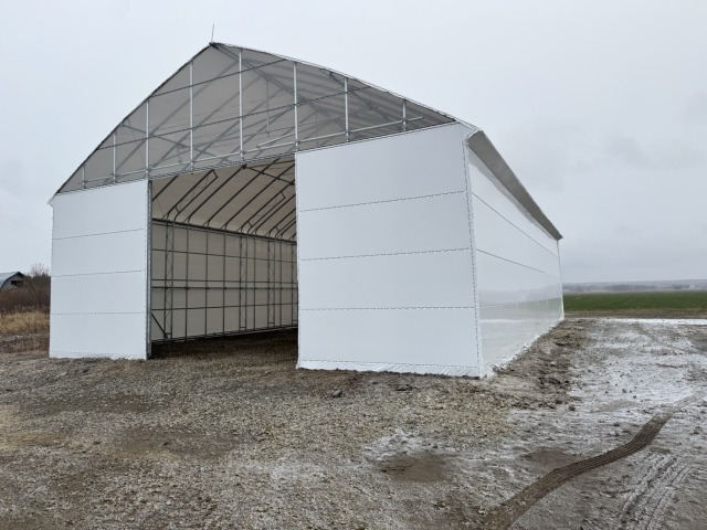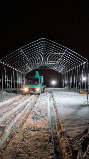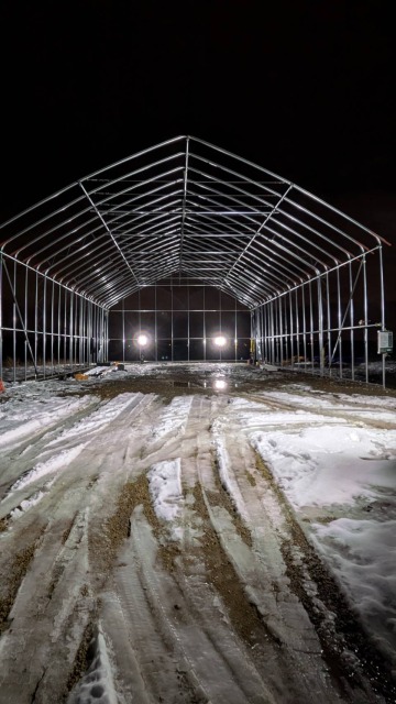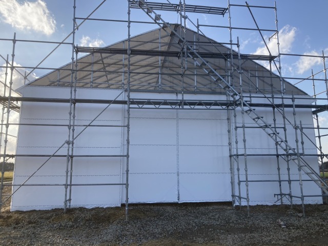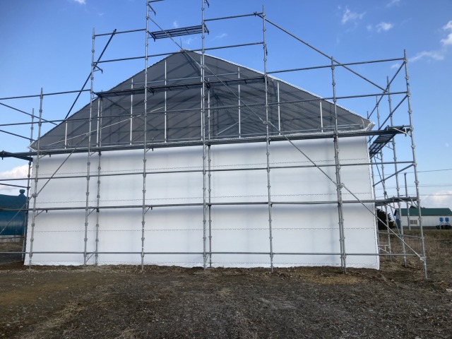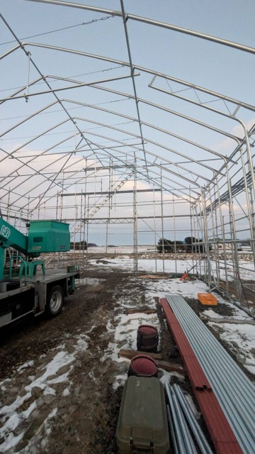 江別、農家様、間口10.8m・奥行18m・軒高4m、D型倉庫代用として
