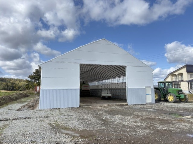 北竜町 農家さん 大型トラクターなど格納庫 間口12.6m・奥行29.7m・肩高4m