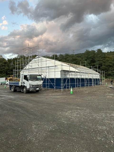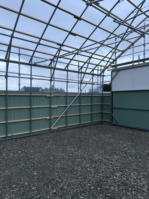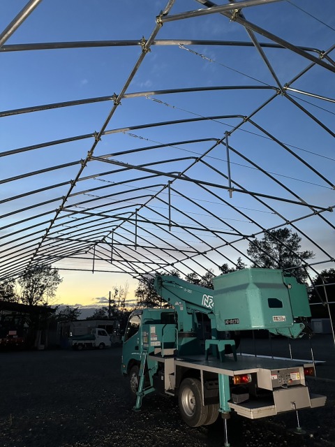 北広島市 重機屋さん 車両格納庫 間口6m・奥行12m・肩高4m