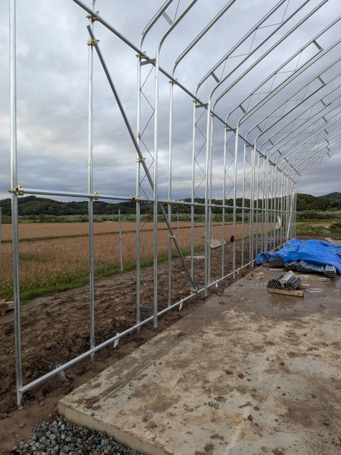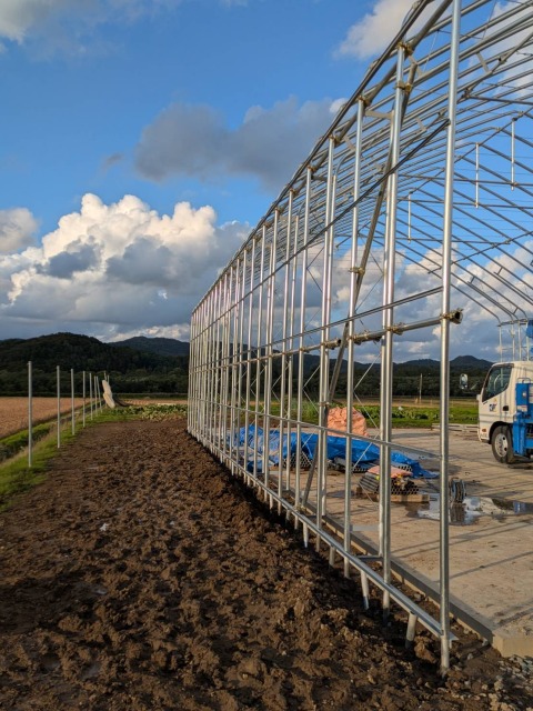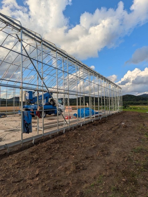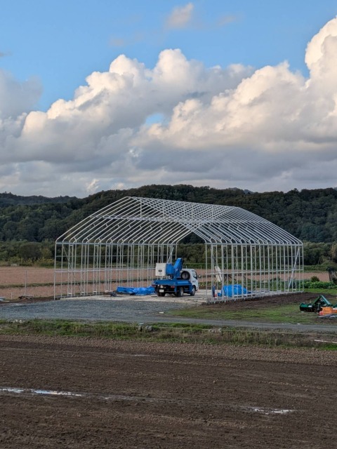 美唄市 農家さん D型ハウスの代用 間口12.6m・奥行18m・肩高4m