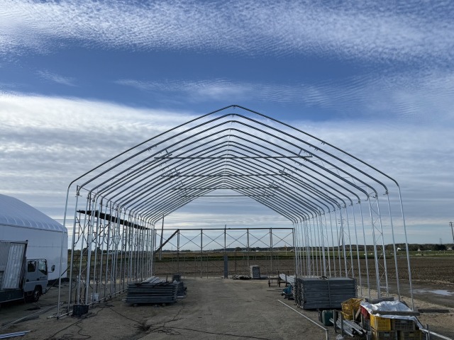 美唄市 農家さん D型ハウスの代用 間口12.6m・奥行18m・肩高4m