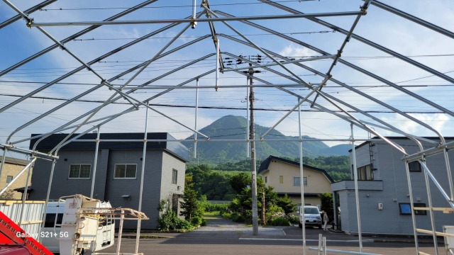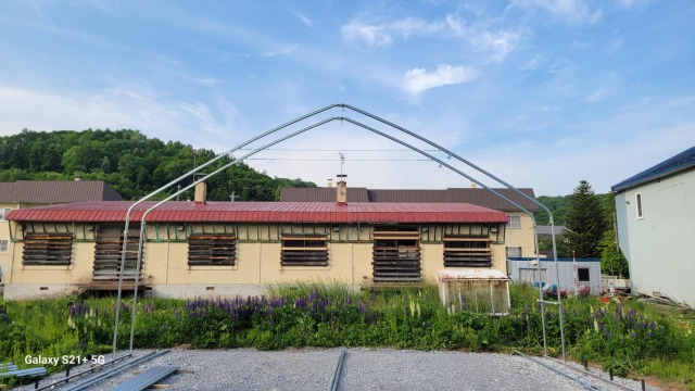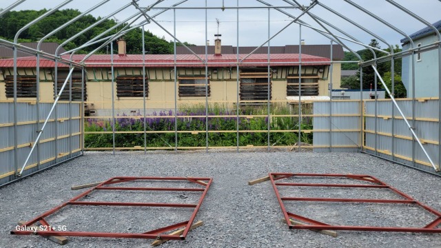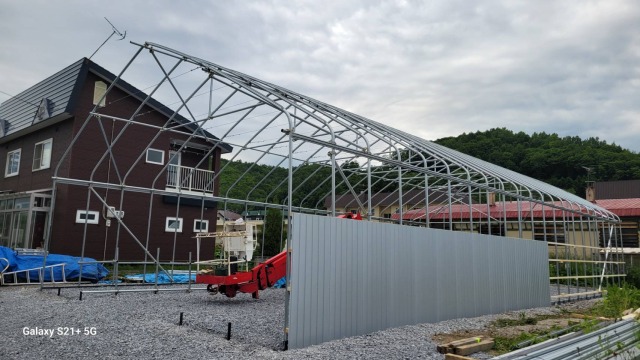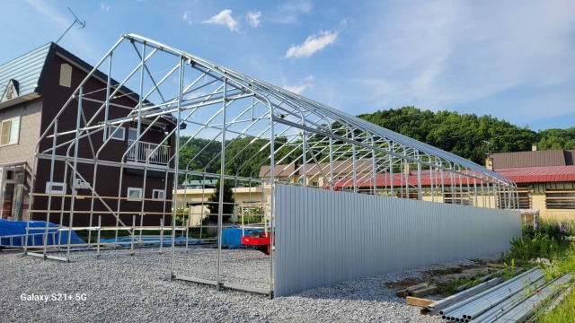 日高町 牧場さま シェルターハウス 間口7.2m・奥行9m・肩高3m