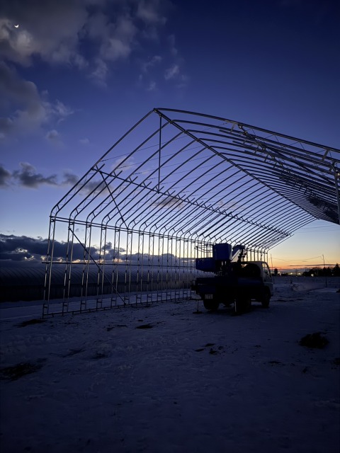 鵡川町 農家さん 農業用倉庫2棟目 間口10.8m・奥行25.2m・肩高4m