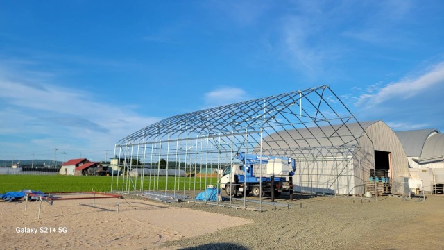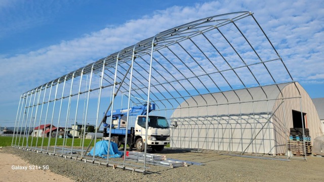 北見 農家さん D型倉庫の代用 間口10.8m・奥行14m・肩高3.5m