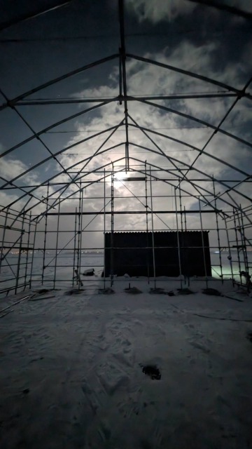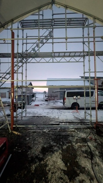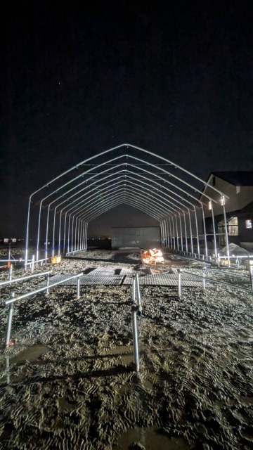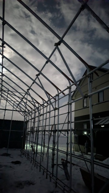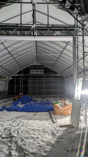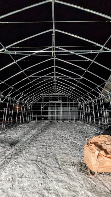 江別、農家様、間口10.8m・奥行18m・軒高4m、D型倉庫代用として